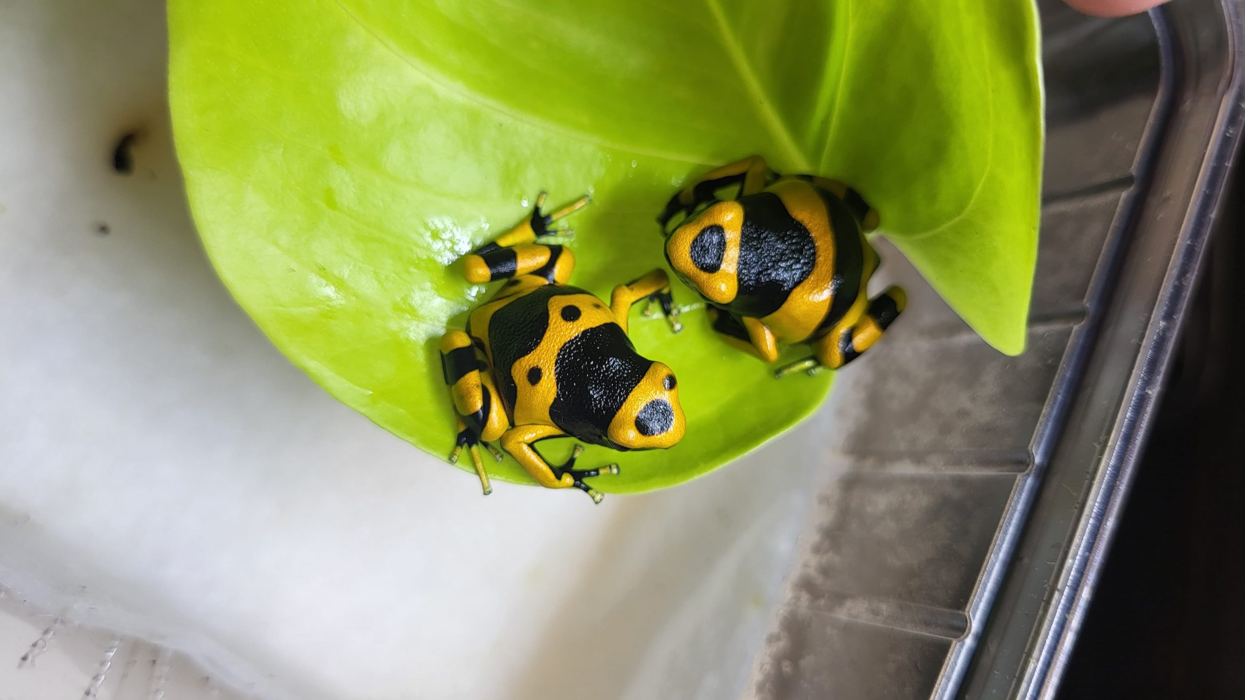 - Two juvenile Bumblebee dart frogs (feeding well and well-started)