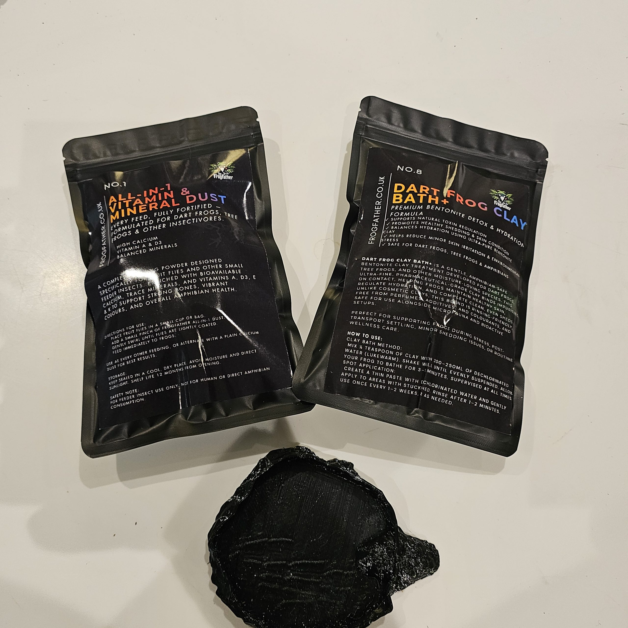 Healthy dart frogs aren’t built on a single supplement — they thrive on consistent, balanced support. The Dart Frog Essentials Pack brings together two key elements of dart frog care that work best when used alongside each other: nutritional supplementation and natural mineral access.